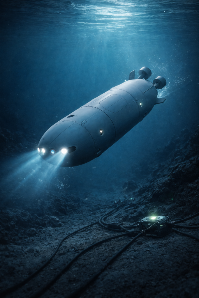 Enable underwater delivery of mission modules and communication relay between offshore assets and shore units.